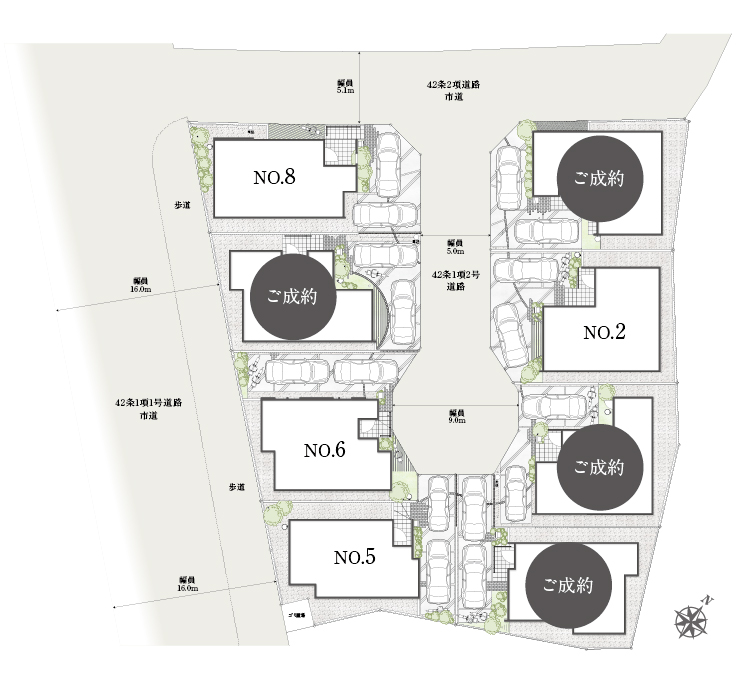 分譲地へのアプローチは通り抜けできないクルドサックになっているため、不特定多数の車や人が通らず安心して暮らせます。