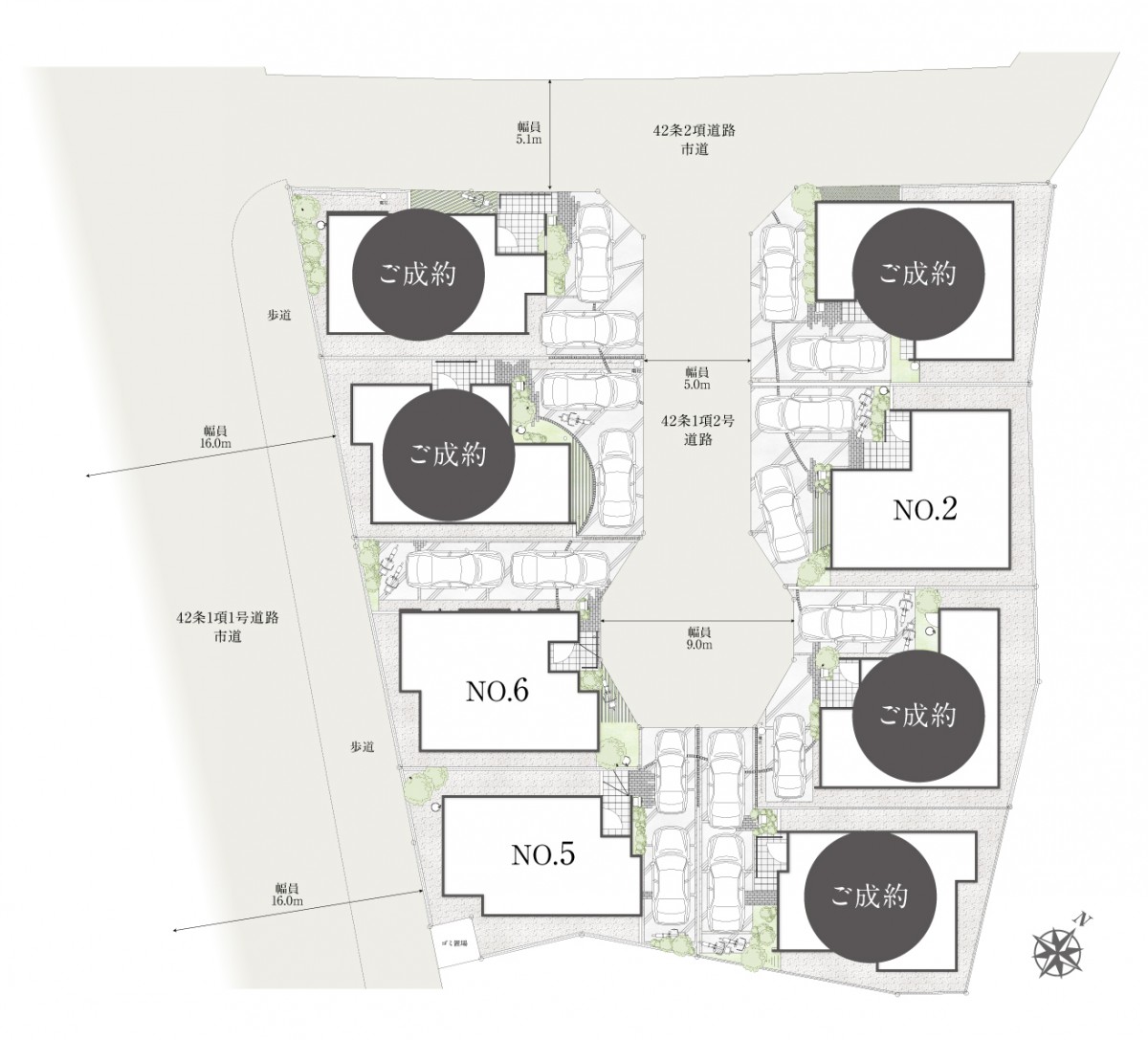 | 分譲地へのアプローチは通り抜けできないクルドサックになっているため、不特定多数の車や人が通らず安心して暮らせます。 |