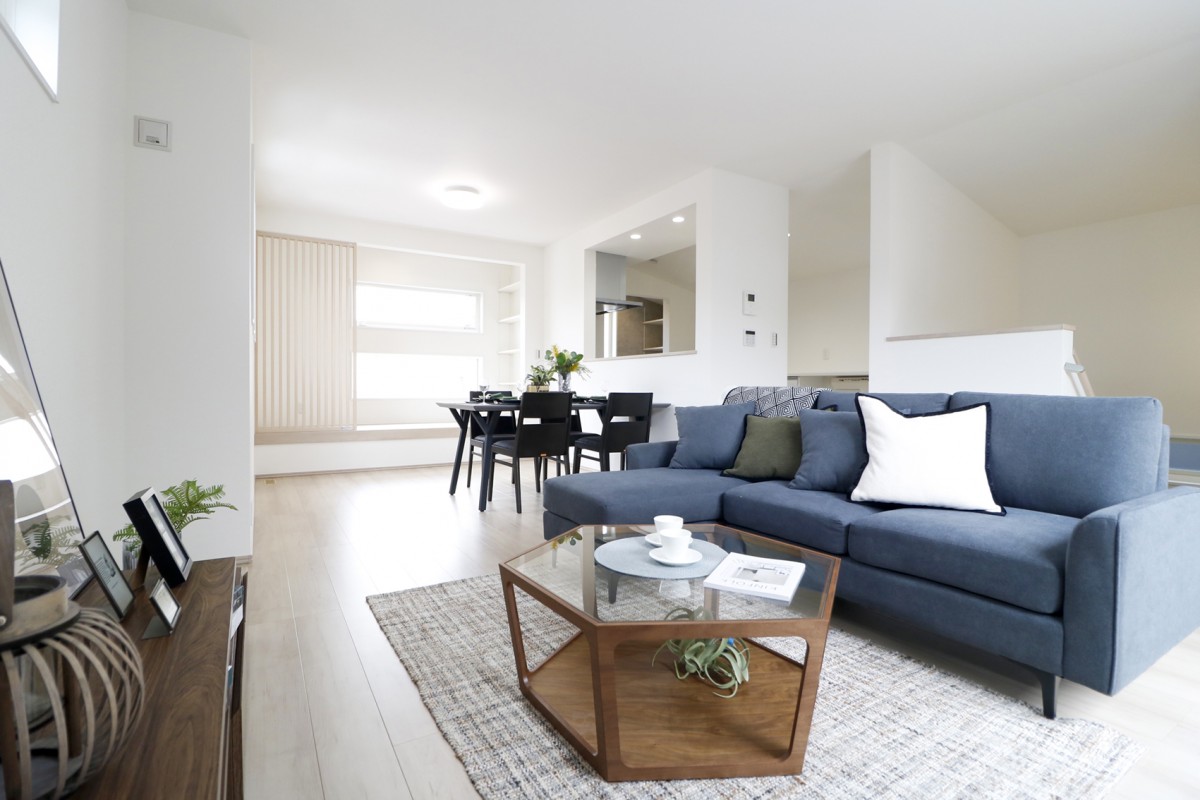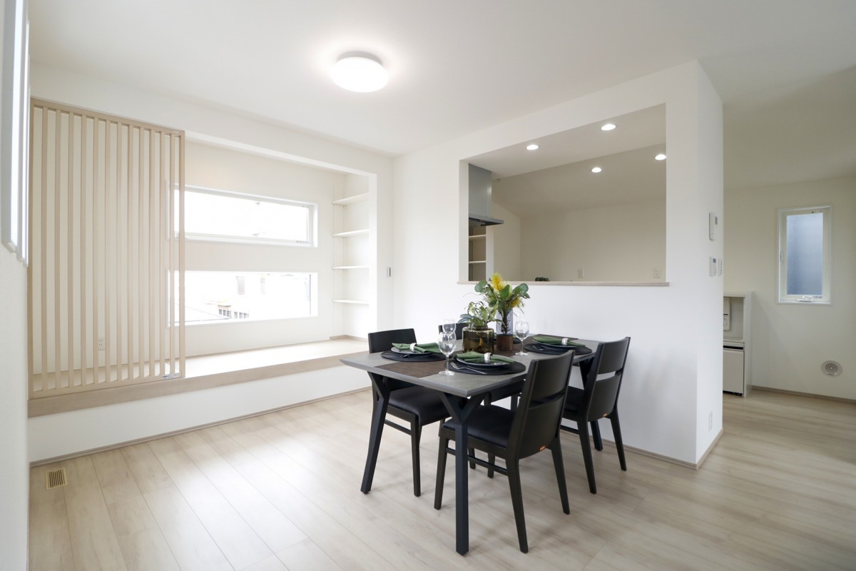 21帖を超える広々としたリビングに、家事がしやすい動線や、外からの視線を気にせずくつろげるロジアを備えた住まいです。 フロアキャビネットや小上がりヌック、独立型脱衣室、ウォークインクローゼットなど、毎日の暮らしを快適にする工夫が詰まったプランです。