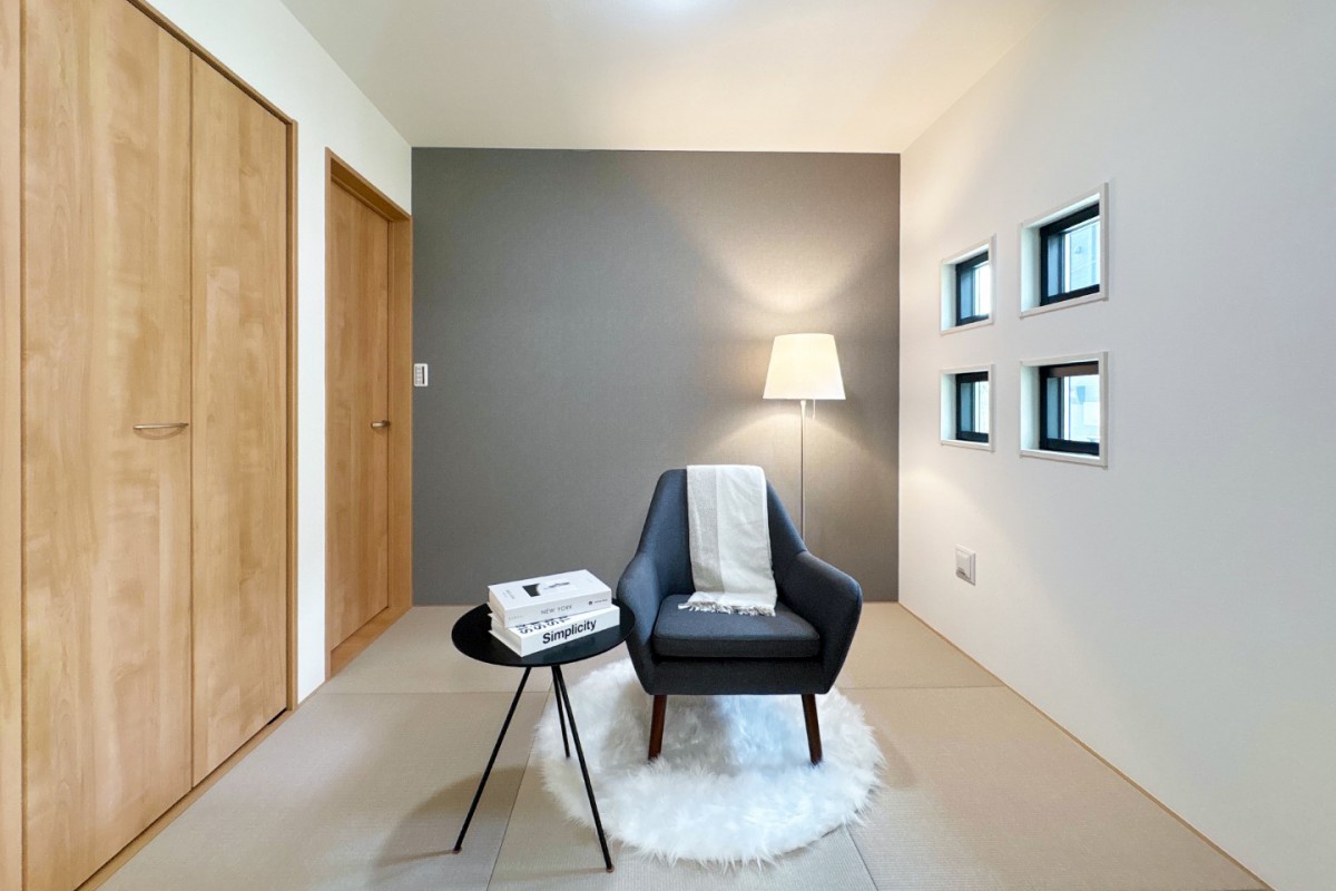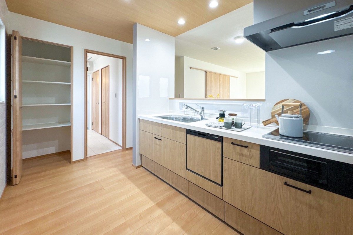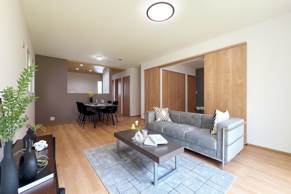 安らぎを深め、こころ整う穏やかな住まい。 キッチンとひとつながりになった開放的なリビング、心を整える和の空間、家族が思い思いにくつろげるプランです。 家事ラク動線や、大容量のダブルウォークインクローゼットなど住まいとしての機能も充実しています。