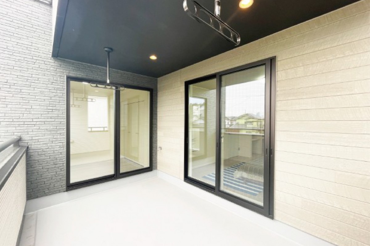 主寝室と洋室の2ヶ所からアクセスできる5帖のインナーバルコニーは、家具を設置すれば家族のくつろぎスペースに。