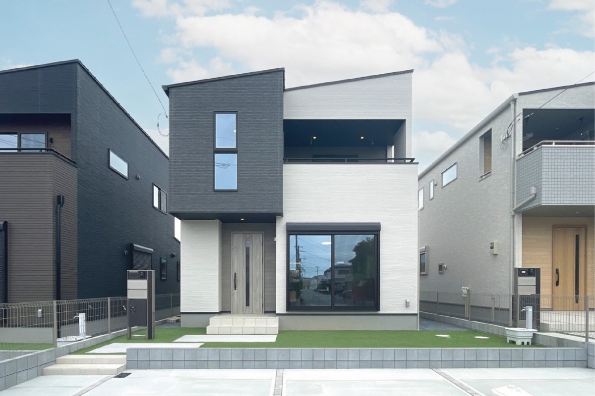 白を基調にグレーをアクセントに採用したモダンな外観