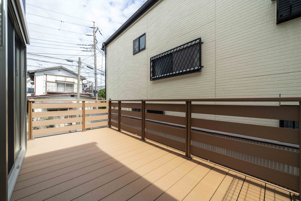 1階のウッドデッキと2階のバルコニー、気分に合わせて使い分けられる2つの外空間が、日常に心地よいゆとりをもたらします。緑に癒されるウッドデッキと、朝日や星空を楽しむバルコニーで、自分だけの静かな時間を楽しめます。