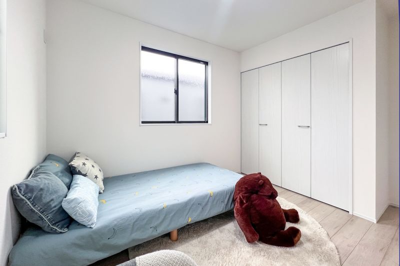 白を基調としたシンプルなデザインの洋室。子ども部屋やリモートワーク部屋にぴったりです。二面採光で陽当たりも良好。全洋室にクローゼットも完備しています。