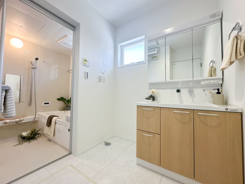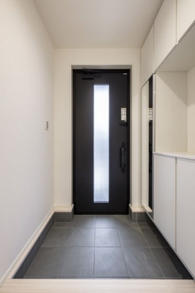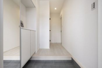 ◇鏡付きの玄関で、お出かけ前の身だしなみチェックに便利。空間を広く見せる効果もあり、明るく開放的な印象です♪