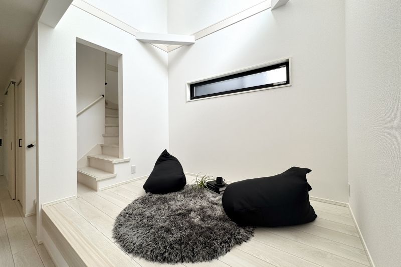 ◇上部吹抜の小上がりスペースを隣接させたリビング・ダイニング。自由なスタイルで過ごせ、キッチンから目が届くので、小さいお子さんのお昼寝やプレイゾーンとしても重宝します♪
