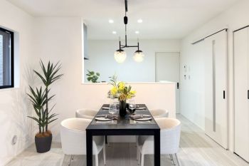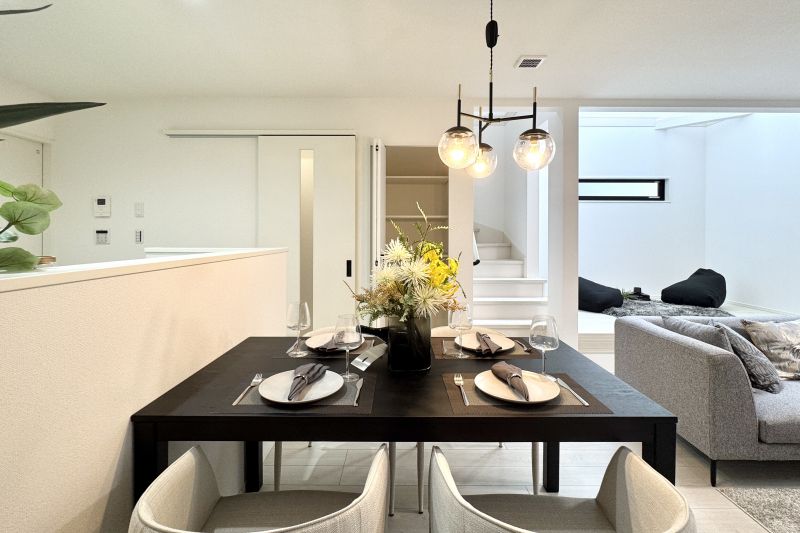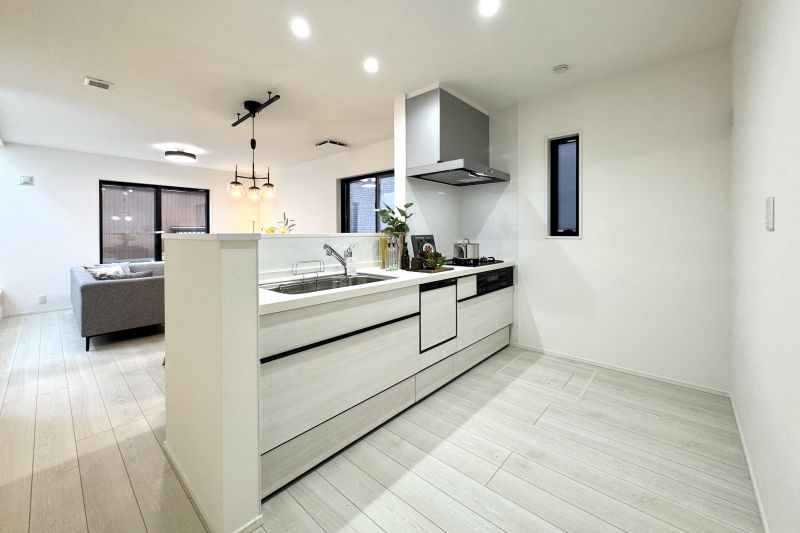 ◇キッチンからリビングやダイニングを見渡せる間取りで、家事をしながら家族の様子を見守れます。小さなお子さまがいるご家庭にも安心の設計です♪