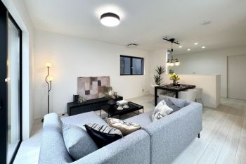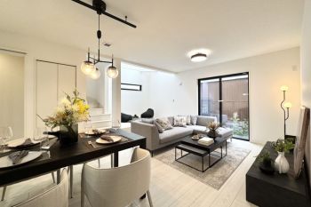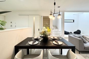 ◇陽光がたっぷりと注ぐリビング。家族の集う場所には、各邸それぞれに+αの魅力を広げるプランをご用意し、家族のくつろぎ時間を華やかに彩ります。