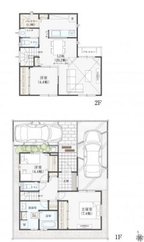 3LDK+開放的な勾配天井+パントリー+バルコニー
