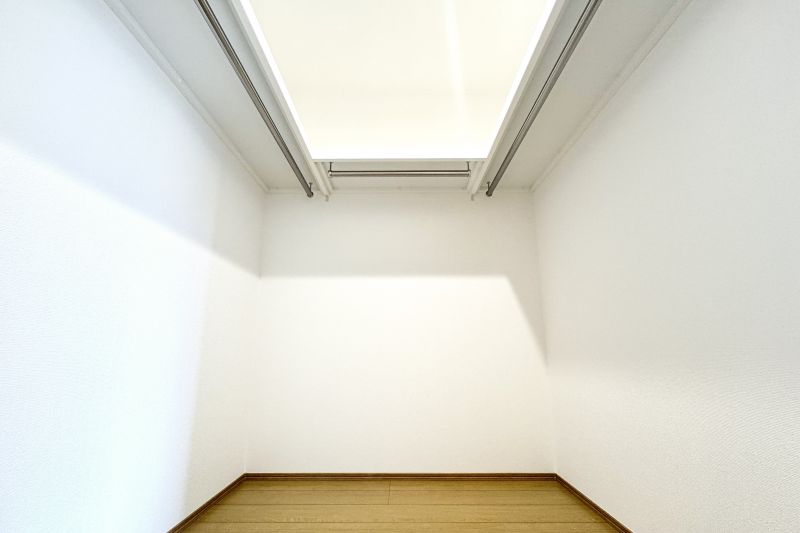 ◇2階主寝室の2.0帖のWICにはグルっとハンガーパイプがあり、衣類の収納もラクラク。