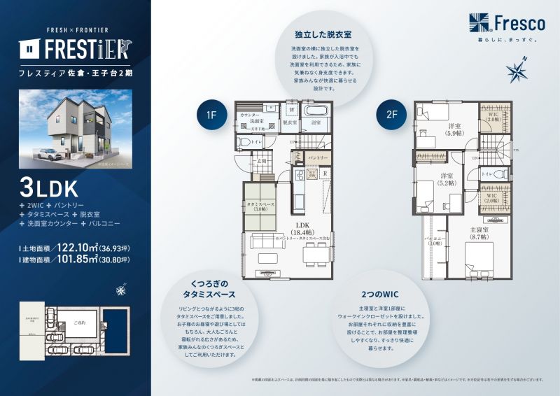 +2WIC+畳スペース+脱衣室+洗面カウンター+バルコニー |