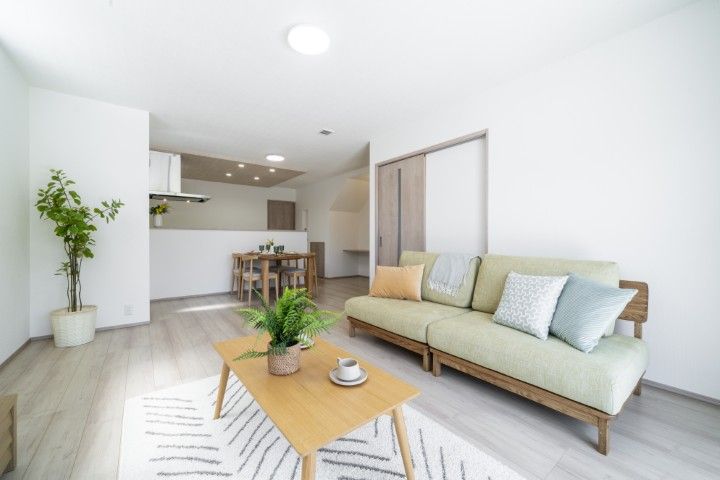 【開放的で明るさに満ちた空間】 陽光がたっぷりと注ぐリビング。家族の集う場所には、各邸それぞれに+αの魅力を広げるプランをご用意し、家族のくつろぎ時間を華やかに彩ります。※現地内観