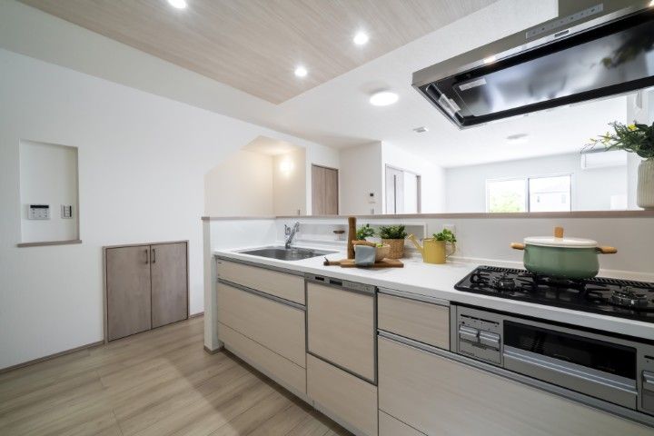 お子様を見守りながら料理ができる解放感あふれるオープンカウンターキッチンです。※現地内観