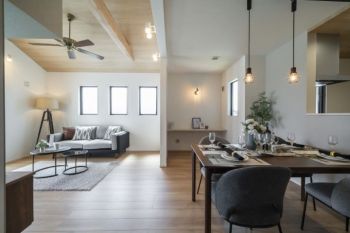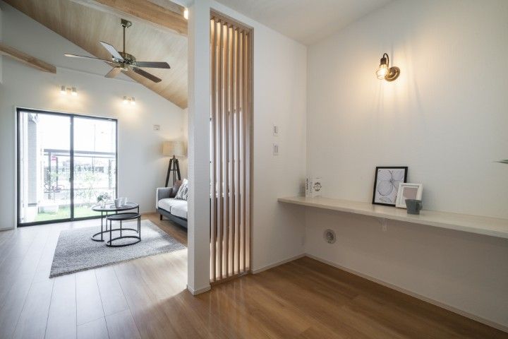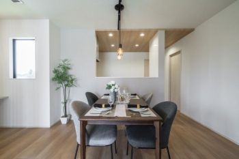 カウンターを設け、暮らしにプラスαの開放感&吹き抜けのある暮らし。※現地内観