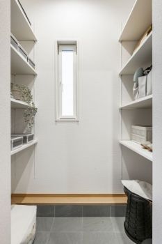 ◇調味料や保存食、キッチン雑貨などをたっぷり収納できるパントリー付き。生活感を隠しながら、使いやすさを高めた機能的な空間です♪