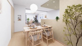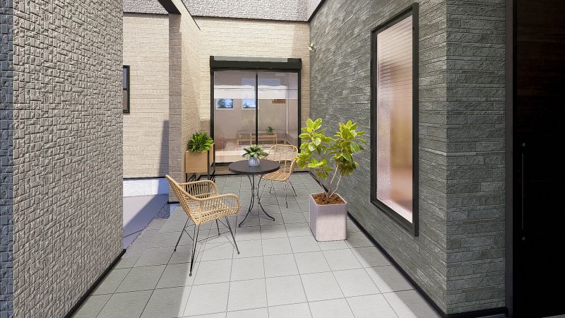 ◇ロジアとは、イタリアでルネサンス期に生み出された中庭のこと。建物と壁で囲まれた”半屋外空間(プライベートコート)”です。 ※内観完成予想図