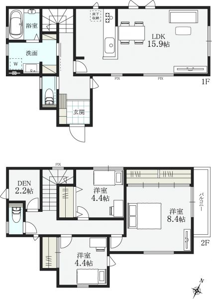 間取り 3LDK 間取り内訳 +DEN(2.2帖の小さな空間)+バルコニー