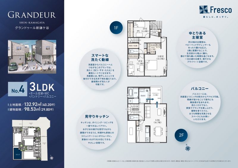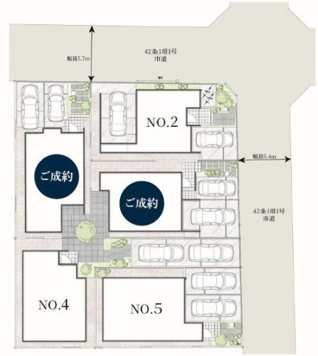 ◇東中沢エリアでは希少な、全4邸の大型分譲地です。 分譲地内は道路を設けず、敷地形状を最大限に活かしたゆとりある街区設計を施しました。