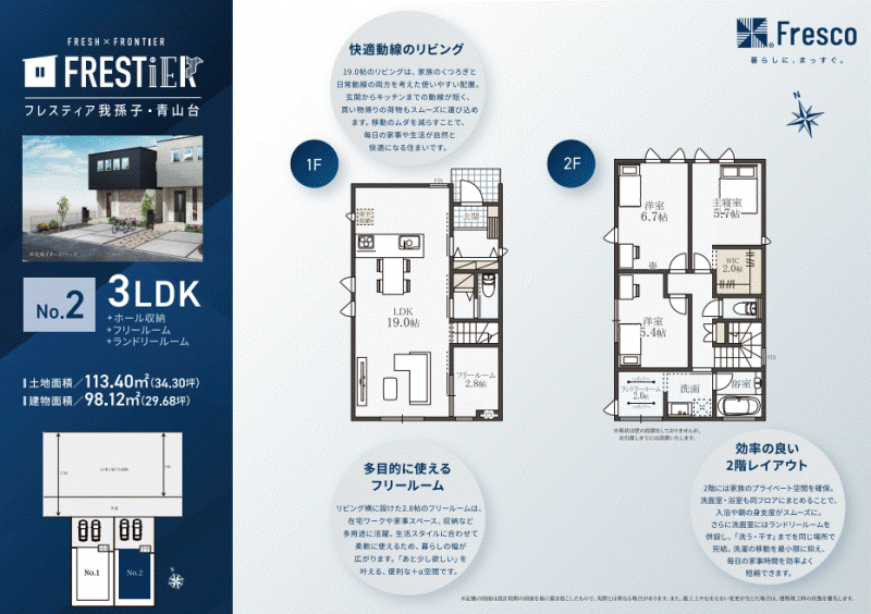 2号棟(プラン) ・快適動線のリビング ・多目的に使えるフリールーム ・効率の良い2階レイアウト