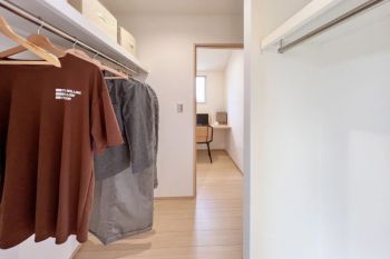 ウォークインクローゼットには、ぐるっとハンガーパイプがあり、お洋服を季節別で仕舞えます。