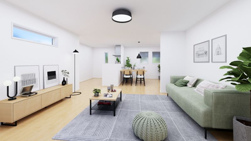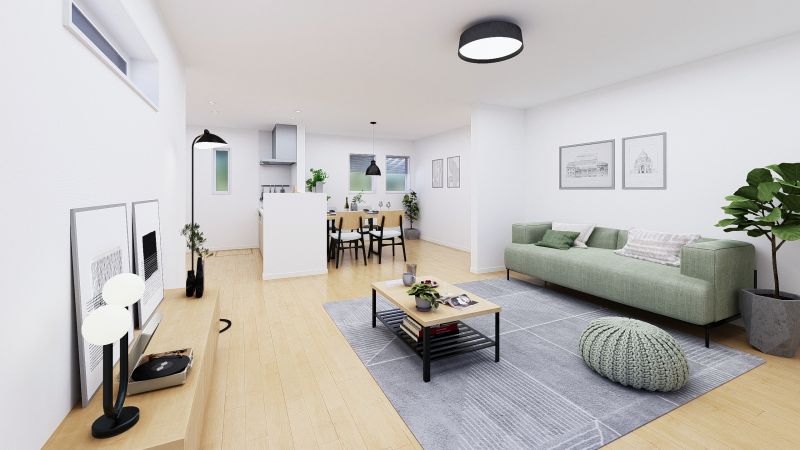 リビングダイニングキッチンを中心とした、日差しをたっぷりと感じる事の出来る住まい♪ ※内観パース