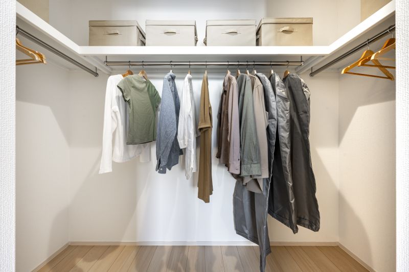 ◇主寝室には、たっぷり収納できるウォークインクローゼットを設置。衣類や小物をひとまとめに収納でき、毎日の身支度がスムーズに。※施工事例