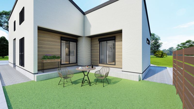 ◇京成松戸線「滝不動」駅 徒歩17分 ◇保育園徒歩5分・小学校徒歩9分・スーパー徒歩13分 【完成予想パース】