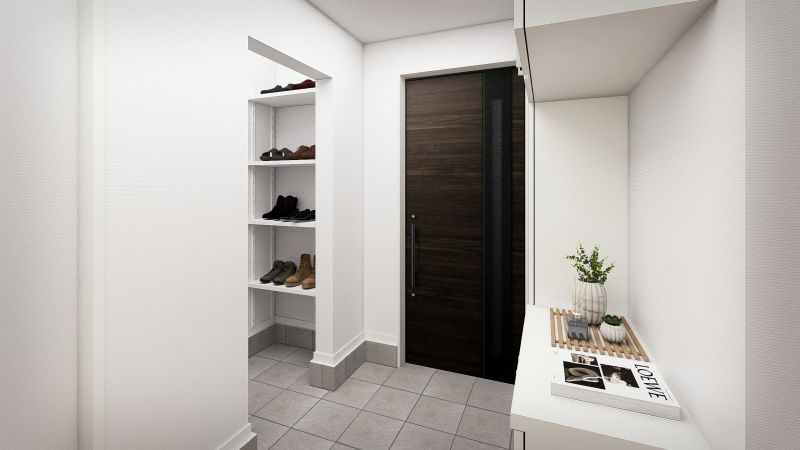 ◇家族の靴だけでなくアウトドア用品やベビーカーなども収納できるため、きれいな玄関を保てます◎【完成予想パース】