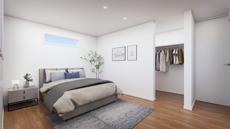 ◇広々9.2帖の主寝室。居室を広々と使え、衣類や日用品の整理にも便利です。快適な暮らしをサポートします。【完成予想パース】