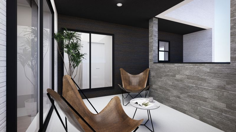 ◇天候に左右されにくいインナーバルコニーは、洗濯物干しやくつろぎ空間として活躍。プライバシー性も高く、多目的に使えるのが魅力です◎【完成予想パース】
