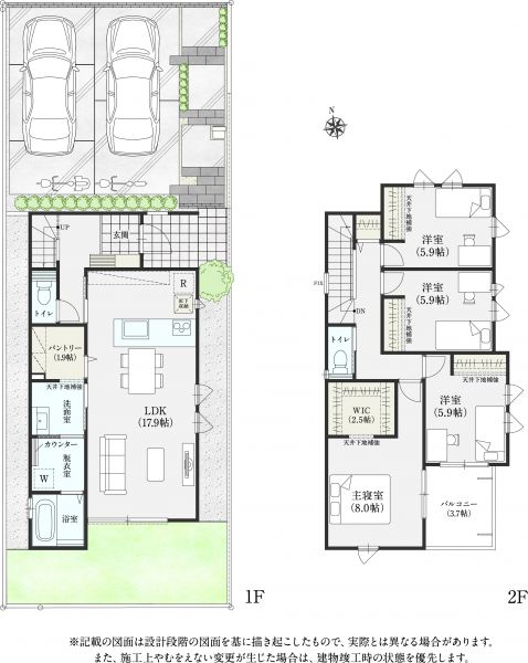 | 間取り | 4LDK | 間取り内訳 | +WIC+パントリー+脱衣室+2階ホール収納+バルコニー |