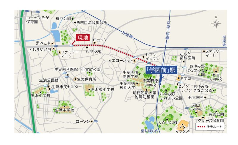 | 最寄駅1 | 京成千原線 学園前 | 徒歩分数 | 17分 |