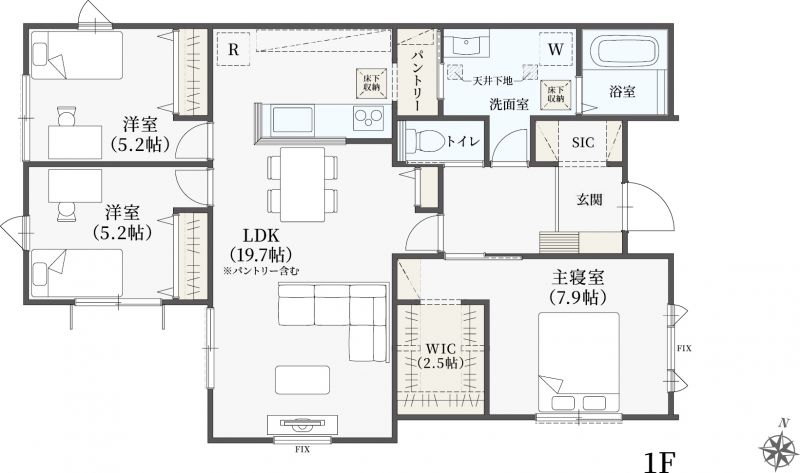 | 設備 | 温水洗浄便座、追焚機能、浴室乾燥機、システムキッチン、カウンターキッチン、食器洗浄乾燥機、ウォークインクローゼット、床下収納、洗髪洗面化粧台、照明器具、電気、都市ガス、上水道、下水道、複層ガラス、モニタ付インターホン、ディンプルキー、駐車場2台分 | ||