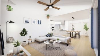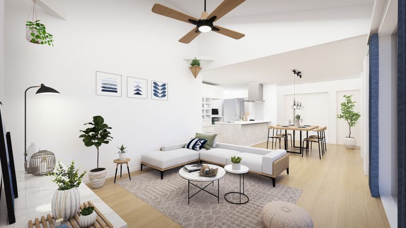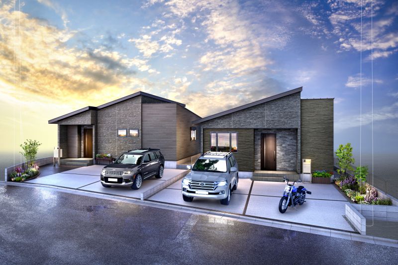 近年人気が高まる平屋は、ワンフロアで生活できる機能性の高さ、家族間コミュニケーションの取りやすさというマンションのメリットも備えています。※連棟完成予想図