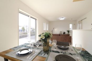 ◇リビングダイニングは南と南東に窓を設け暖かな朝日につつまれながらの朝食は家族の笑い声が絶えませんね!